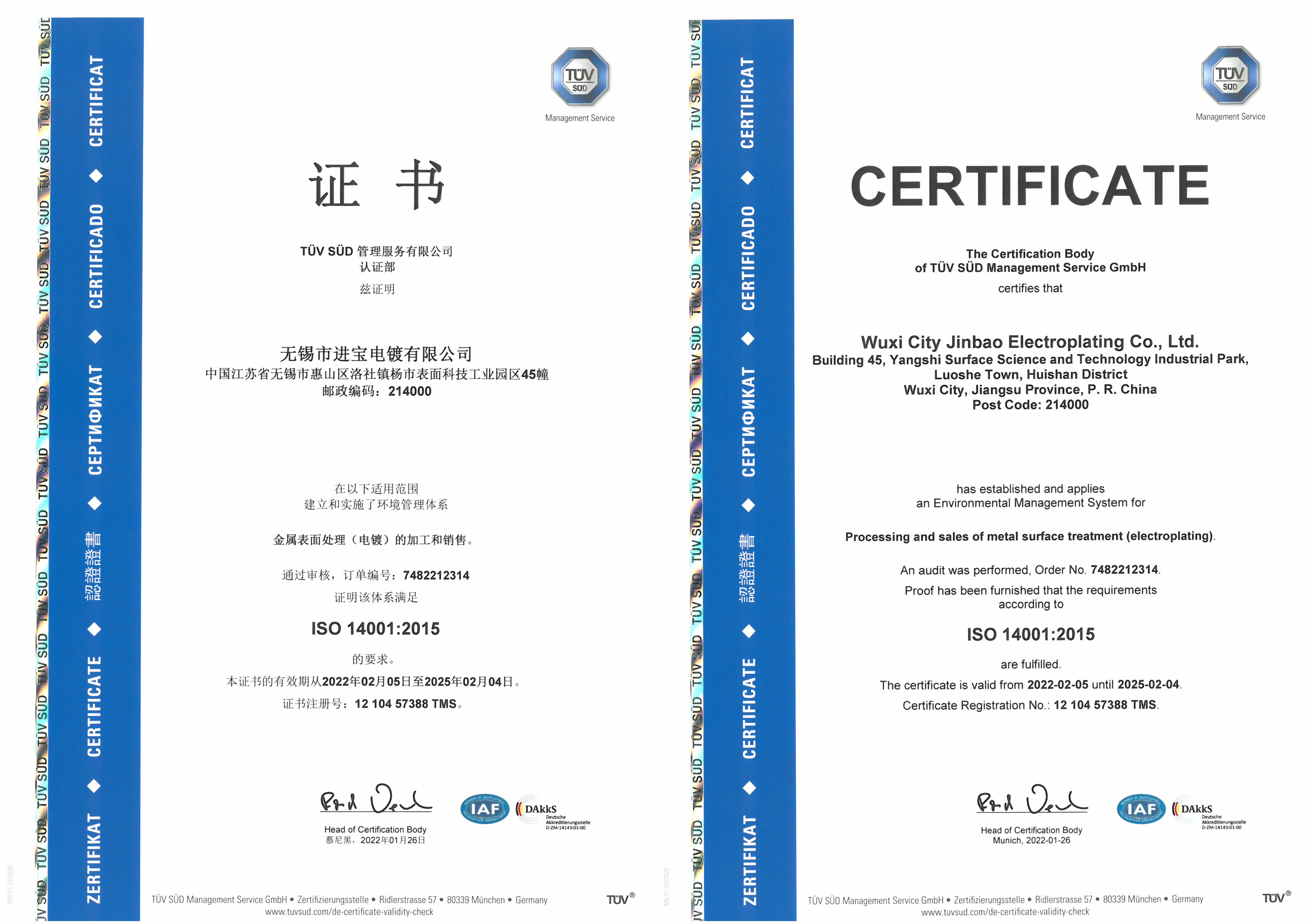2016年1月首次通过ISO14001环境管理体认证,并保持证书持续有效