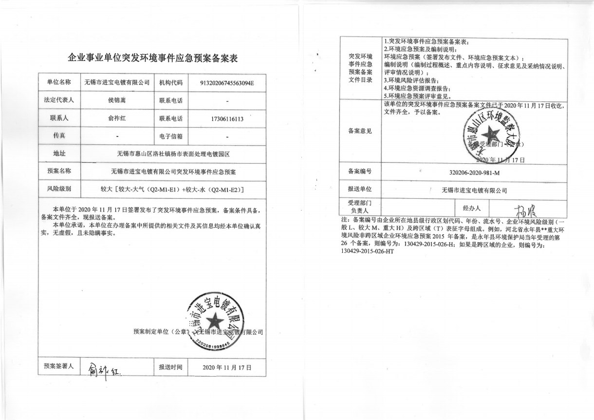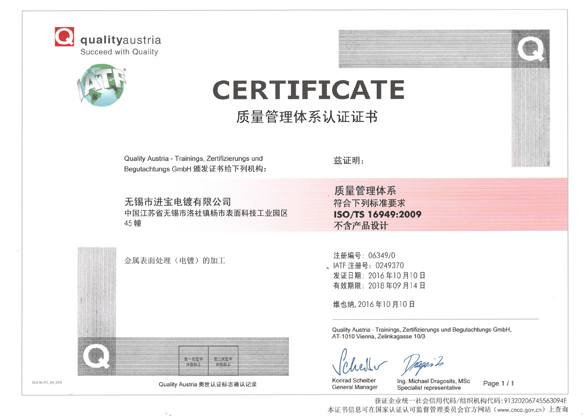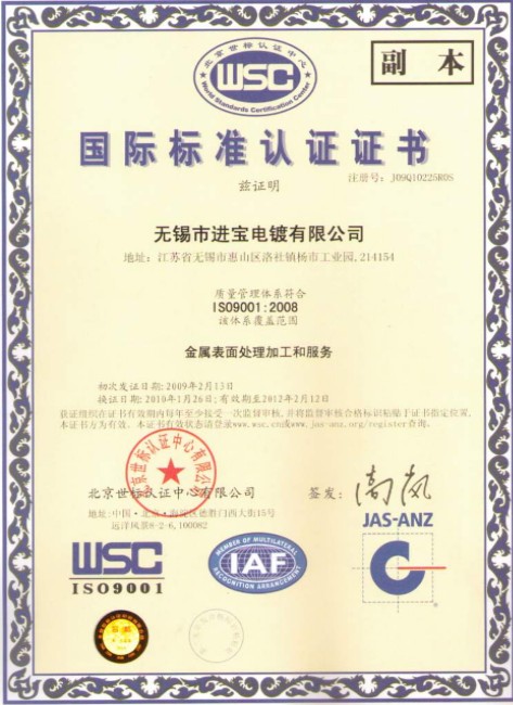 无锡市进宝电镀有限公司创建于1966年,专业从事汽车零部件的表面电镀处理及电镀工艺的研发,多年来积累了丰富的专业电镀经验。